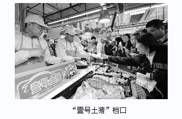 前天上午一大早,位于新街口北大街物美超市大门口,一个铁笼子里竟有一头绑着大红花、重约250斤的活猪,瞬间引起市民围观。这就是陆步轩等人喂出的“壹号土猪”。北大学生卖猪肉果然不一般,他们竟然想出“答题免费送猪肉”的手段招揽顾客,题目全是他们饲养“土猪”的知识,既吸引了顾客,又推销了产品。