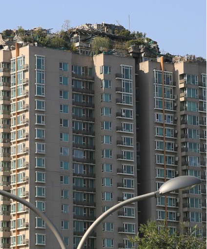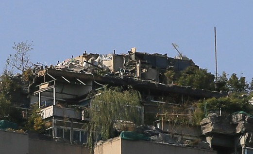 8月15日拍摄的拆除中的北京人济山庄小区“楼顶别墅”