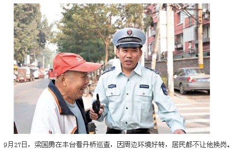 不久前,老梁执行2个月一次的换岗,被调到西四环巡查。马大妈的电话打到队里,“不能让老梁走,老梁不能离开看丹路,他一走,还得乱。”