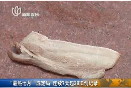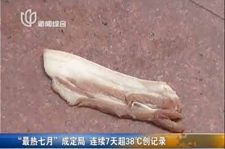 【上海“最热七月”:五花肉放在地上真的熟了!】29下午1点左右,上海电视台记者在人民广场做了一个实验:把一块五花肉放在大理石地面上(图1),30秒后贴地的一面已经泛白(图2),10分钟后已经八分熟(图3)。小伙伴们,出门防烫伤。
