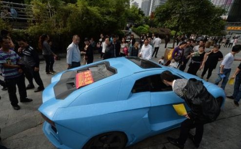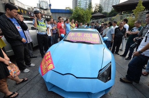 据冷先生说:“豪车”成本只有32000元 接受罚单后,冷先生转身准备离开。在记者一再追问下,他只表示车是花3万元从网上购买的,改装车子只是套了一个外壳,给现代酷派跑车穿上了“兰博基尼”的外衣。