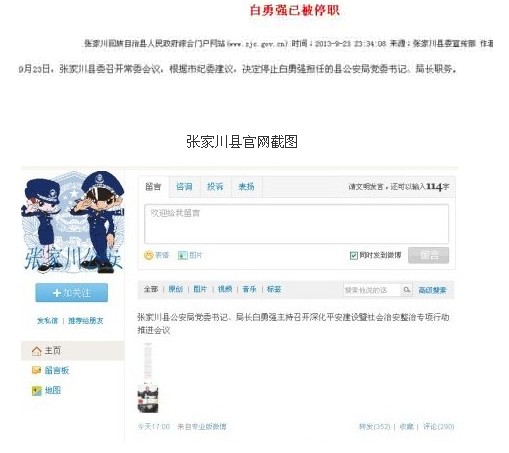 而张家川公安的官方微博在9月23日17点发布消息称,张家川公安局党委书记、局长白勇强,9月23日上午主持召开深化平安建设暨社会治安整治专项行动推进会议。