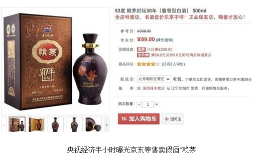 10月13日晚间消息,央视在今晚《经济半小时》节目中曝光了国内天猫京东等知名电商售卖假酒“赖茅”乱象。