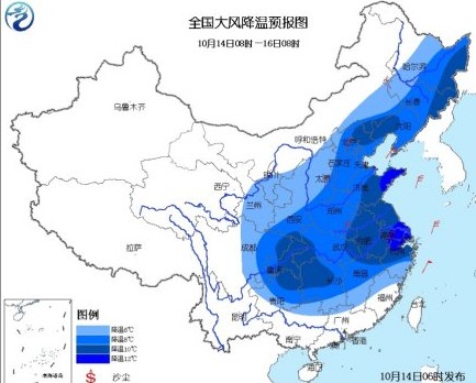 受较强冷空气影响,预计14日08时至16日08时,东北地区大部、内蒙古东南部、西北地区东部、华北、黄淮、江淮、江汉、江南、西南地区东部等地将出现6~10℃降温,其中,山东半岛、江南东部等地局地降温幅度可达12℃以上。上述大部地区并伴有4~6级偏北风,渤海、黄海有7~9级大风。气象专家提醒,冷空气来袭降温迅猛,请注意添衣保暖,预防感冒;部分地区风力较大,要注意防风防火。
