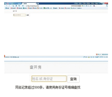 这条微博由实名认证的新浪微博账户@股社区发表于10月18日18时58分。点击链接进入这个名为“查开房”的网站,可见网页十分简陋,整个页面只有一个输入框及一个查询按钮。